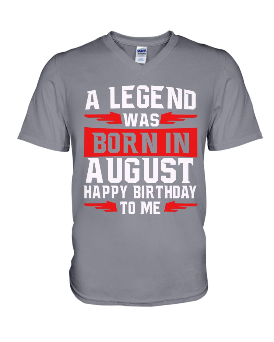 A Legend Was Born In August Happy Birthday To Me Birthday Gift Guys V-Neck